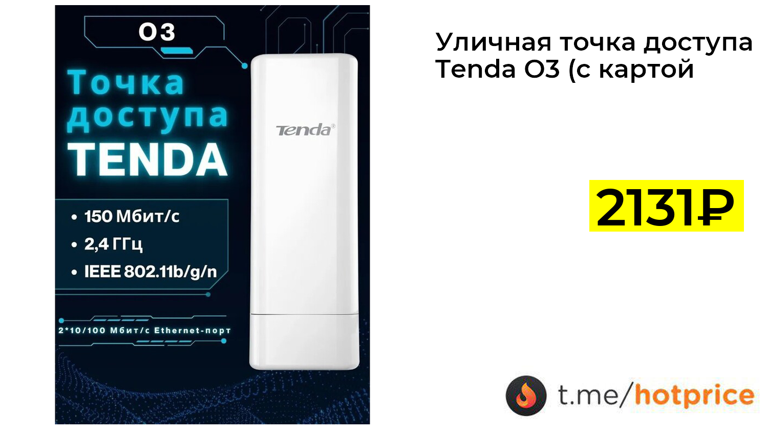 🔹 Уличная точка доступа Tenda O3 (с картой Озон и бонусами продавца) за 2131₽ ❗️