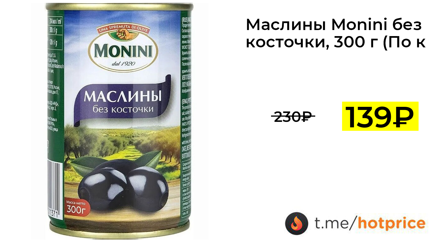 🔹 Маслины Monini без косточки, 300 г (По карте Ozon) за 139₽ ❗️ (везде: 230+₽)