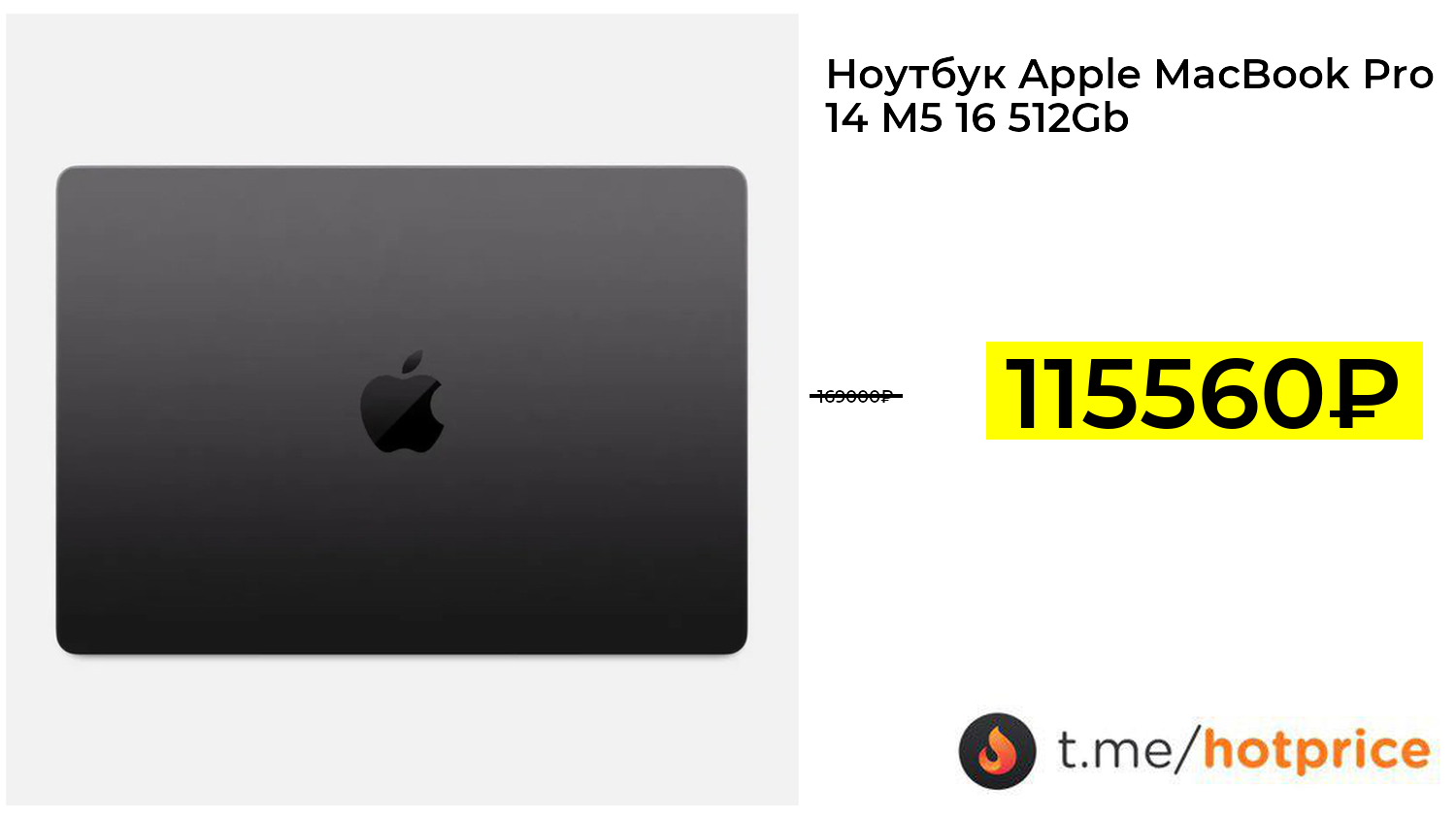 🔹 Ноутбук Apple MacBook Pro 14 M5 16 512Gb Space Black (MDE04) за 115560₽ ❗️ (везде: 169000+₽)
