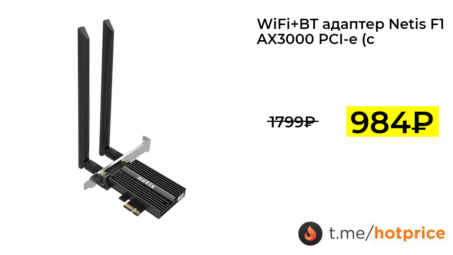🔹 WiFi+BT адаптер Netis F1 AX3000 PCI-e (с ВБ кошельком) за 984₽ ❗️ (везде: 1799+₽)