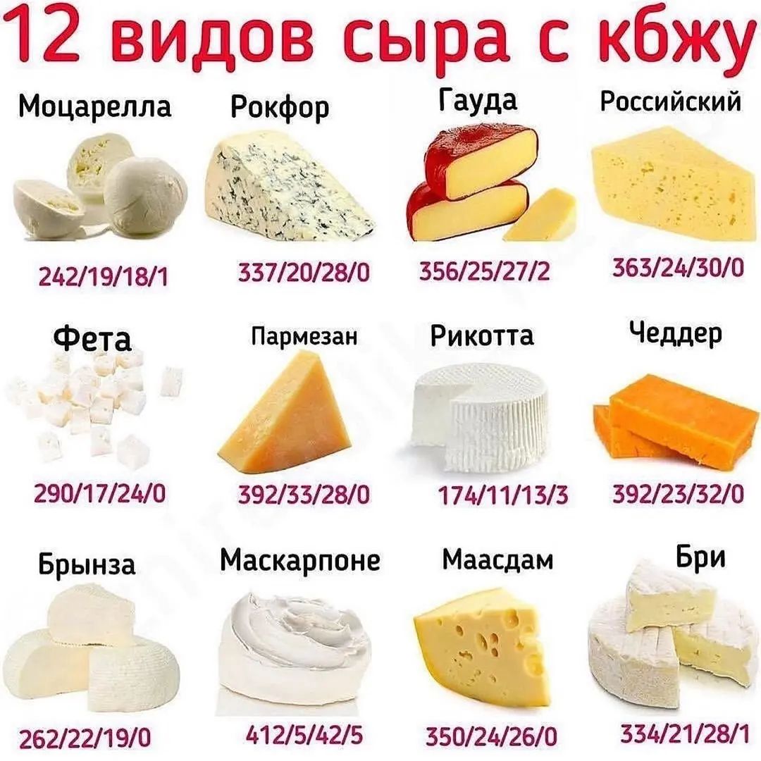 12 видов сыра с КБЖУ