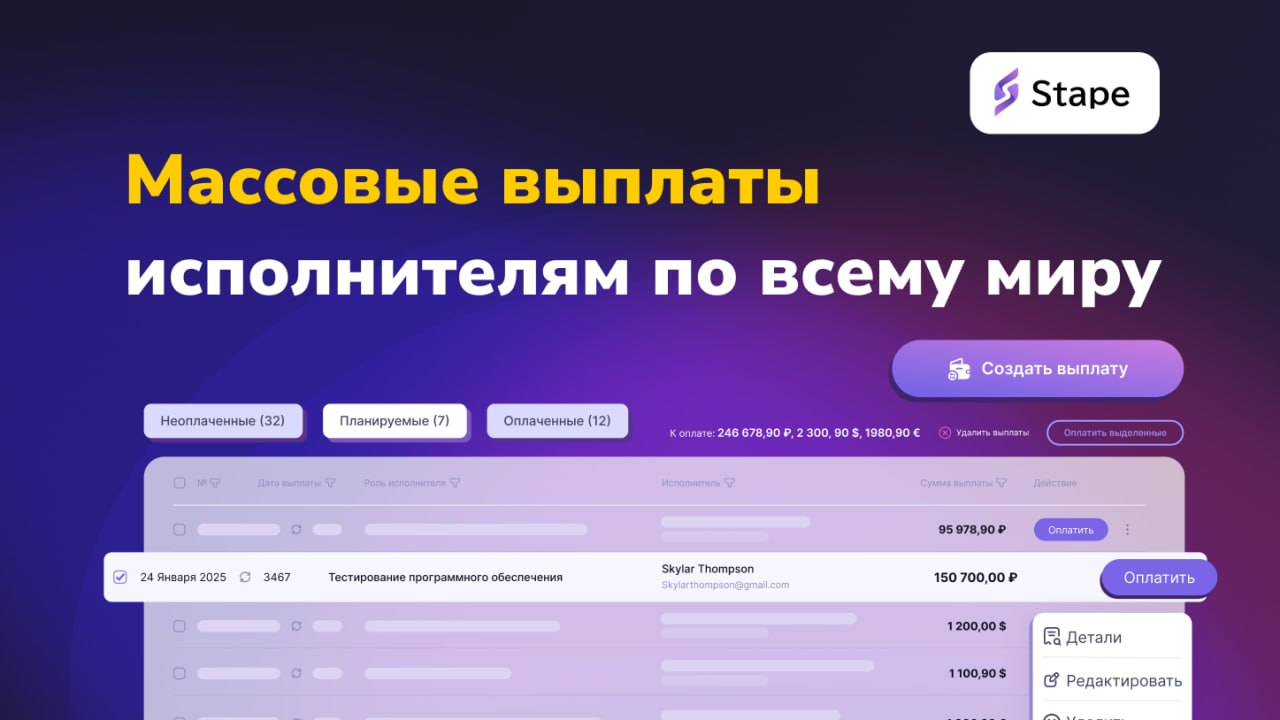Stape — это автоматизированный сервис, который закрывает вопросы с выплатами, причём делает это с фиксированной комиссией в $50. И вот чем ребята реально выделяются: