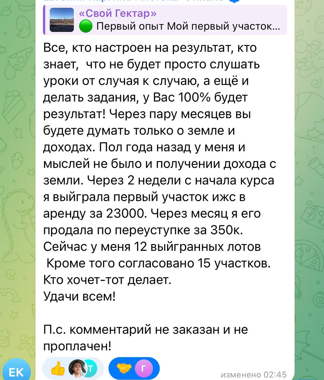 В следующих постах расскажу, как платить минимальные налоги при продаже земли. Не пропустите.